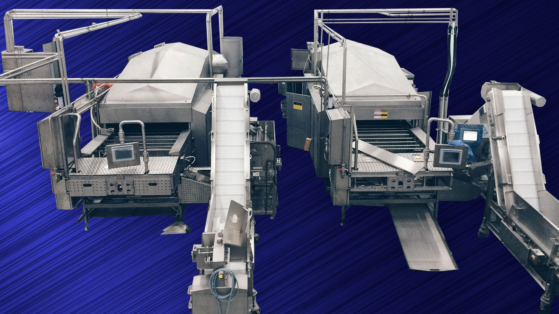 Model M pump, Mighty Mix 750 mixers, overhead batter lines, Drake Sausage Loader